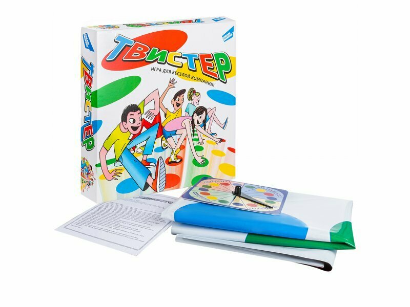 Твистер. New - это невероятно весёлая игра для всей семьи и любой компании, в которой игроки поочерёдно ставят руки или ноги на цвета игрового коврика и пытаются удержать равновесие. Игра развивает ловкость и координацию движений.