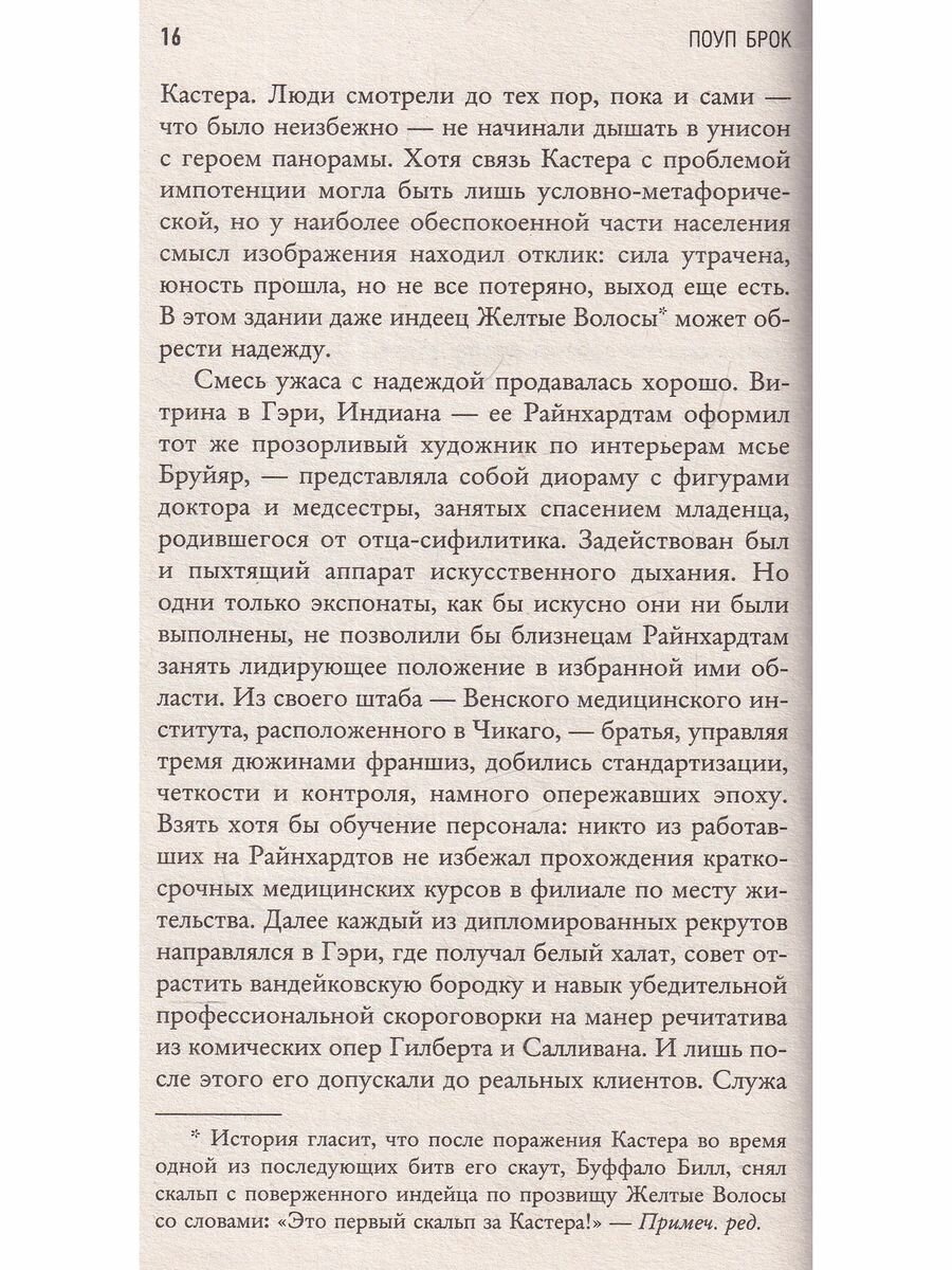 Книга получилась несколько нудноватой, но это не важно. История все равно интересная и поучительная. Основной недостаток произведения – полное пренебрежение задаче по раскрытию медицинского аспекта операций мошенника Бринкли. Надо было подробнее описать, что творилось в организме у бедных мужиков, которым подсаживали инородную ткань с нарушениями асептики и антисептики. Так что хороший консультант, раскрывший этот аспект, сделал бы историю более понятной