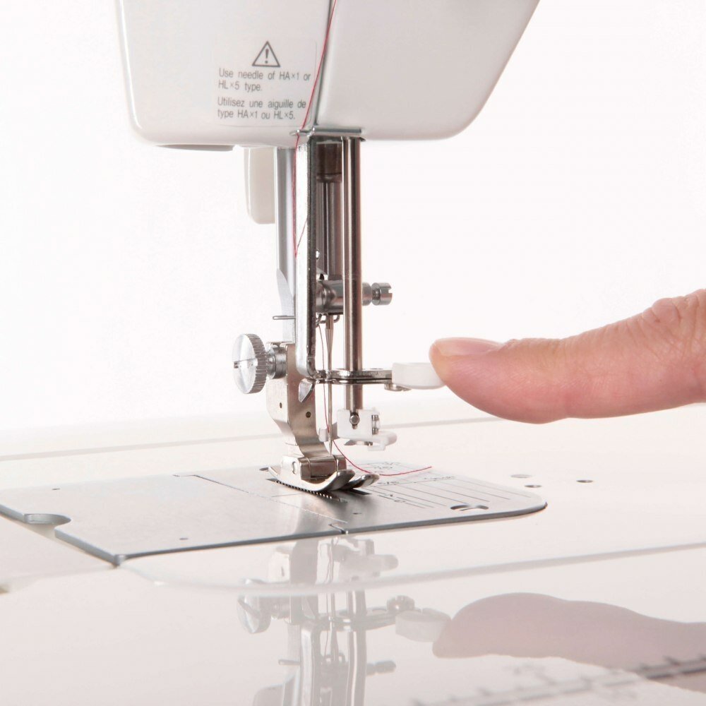 Производителями предусмотрена автоматическая заправка нити и остановка иглы в верхнем положении. Благодаря переключателю иглы после окончания строчки она становится в нужное положение. Регулировка давления лапки на ткань происходит в зависимости от плотности ткани. Реверс обеспечивает закрепление строчки и шитье в обратном направлении. Технические показатели модели:
