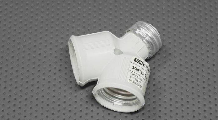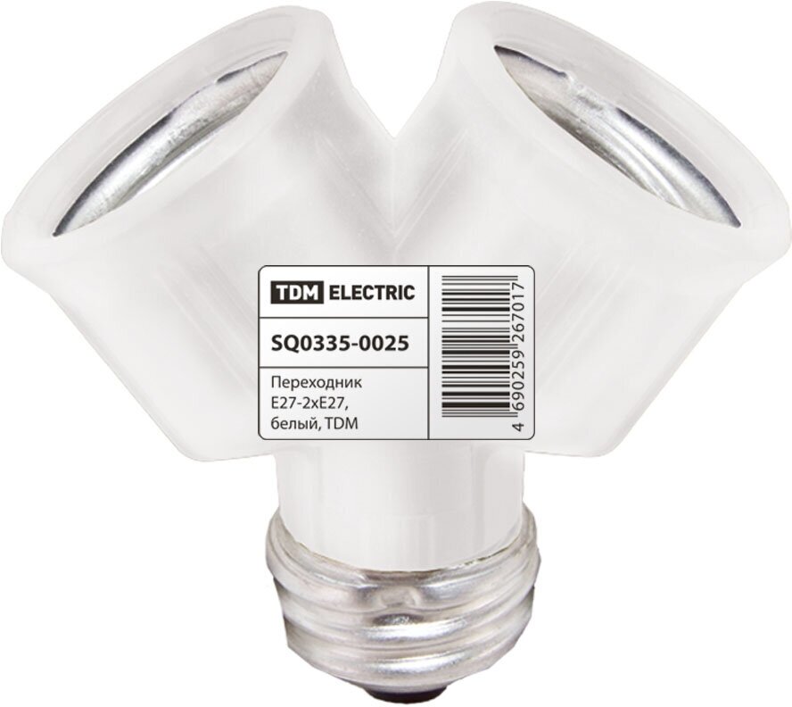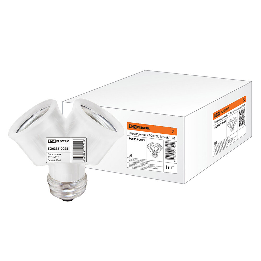 Переходник (патрон-переходник) от компании TDM используется для подключения ламп с патроном отличным от цоколя лампы (E27). Изделие сделано из материала – пластик (полибутилентерефталата), что обеспечит долгий срок службы и неизменность внешнего вида. Цвет переходника - белый.ПрименениеПатроны-переходники предназначены для подключения ламп к светильникам с патроном отличным от цоколя лампы.МатериалыКорпус переходников выполнен из полибутилентерефталата (ПБТ, PBT). Этот материал имеет высокую химическую стойкость к воздействию агрессивных сред, обладает механической прочностью, теплостойкостью. А также является хорошим диэлектриком. При этом все свойства ПБТ стабильны при различных условиях окружающей среды. Свойства применяемого материала обеспечивают переходникам: длительный срок службы, безопасность применения, сохранность внешнего вида на протяжении всего срока службы.ПреимуществаСвойства применяемого материала обеспечивают переходникам: длительный срок службы, безопасность применения, сохранность внешнего вида на протяжении всего срока службы.Патроны-переходники поставляются в индивидуальном пакете-блистере, с наклейкой, на которой указана вся необходимая потребителю информация.Ширина, мм: 27Высота, мм: 55Вес, кг: 0.05Степень защиты: IP20Длина, мм: 27Цвет арматуры: БелыйЦоколи переходника E27-2xE27