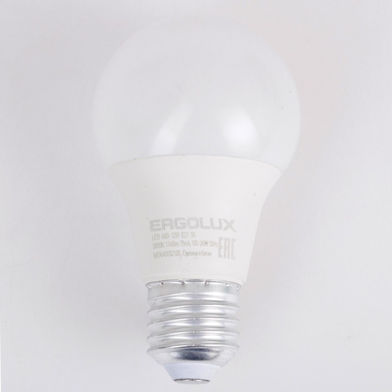 - Лампа светодиодная Ergolux LED-A60-12W-E27-3K, теплый свет, 12 Вт.