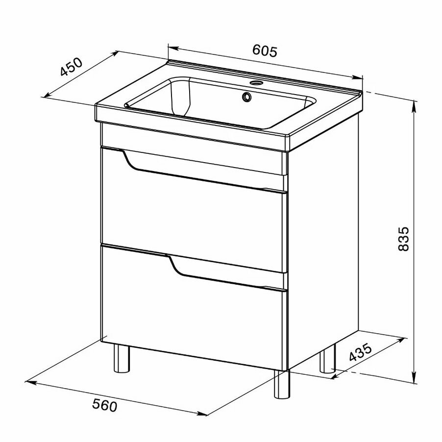 - Размеры тумбы с раковиной (ШхГхВ): 60,5x45x83,5 см.