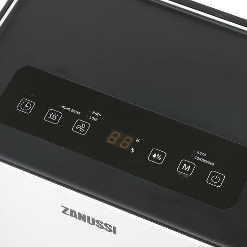 Zanussi (Занусси) – это модель компактного бытового осушителя конденсационного типа работы. Модель оснащена четырехлитровым баком для сбора воды, при заполнении которого прибор будет автоматически отключен. Для максимально легкого перемещения осушитель оборудован прочными колесиками и ручкой. На верхней панели уорпуса установлена панель управления с небольшим дисплеем.