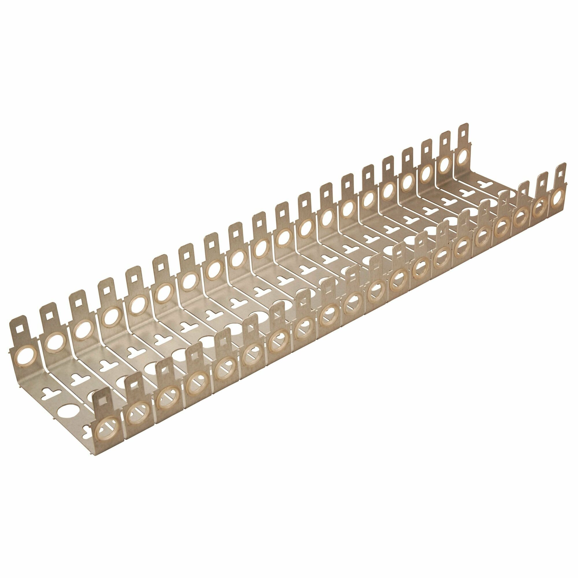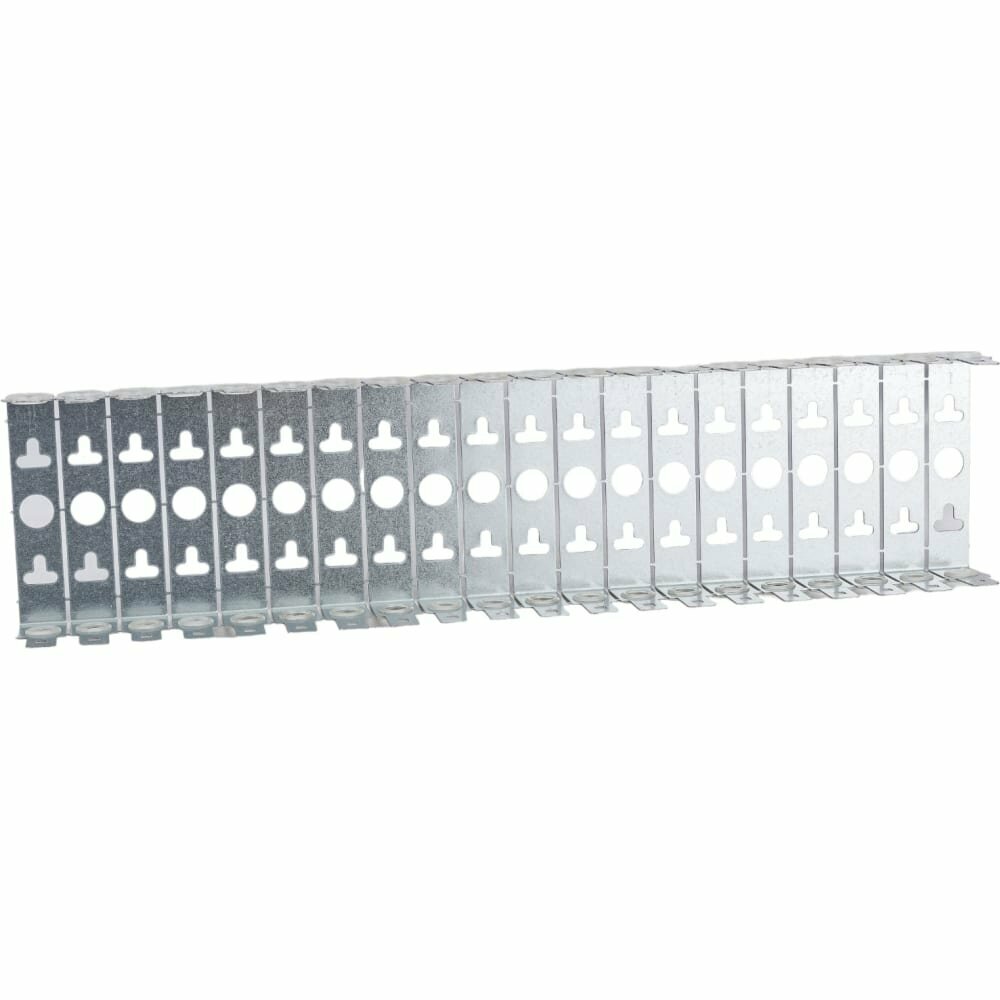 Монтажные хомуты рассчитаны на 20 установочных мест для плинтов с индивидуальной конфигурацией. Между каждой модульной позицией в монтажном хомуте предусмотрены 5 отштампованных кромок, которые отпиливаются ножовкой по металлу, благодаря чему получают необходимую длину для установки плинтов.
