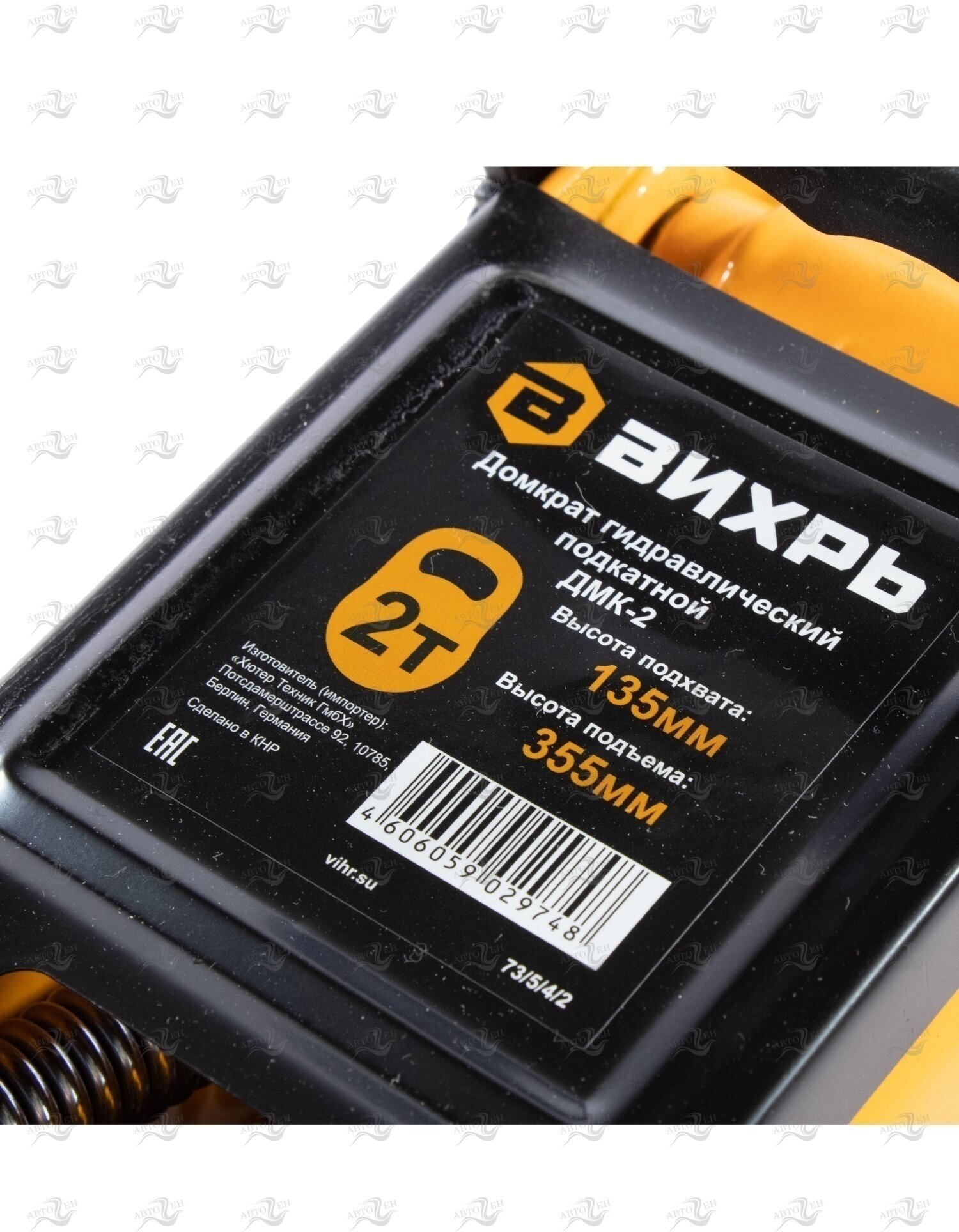 - Домкрат гидравлический ВИХРЬ ДМК-2К подкатной, 2т