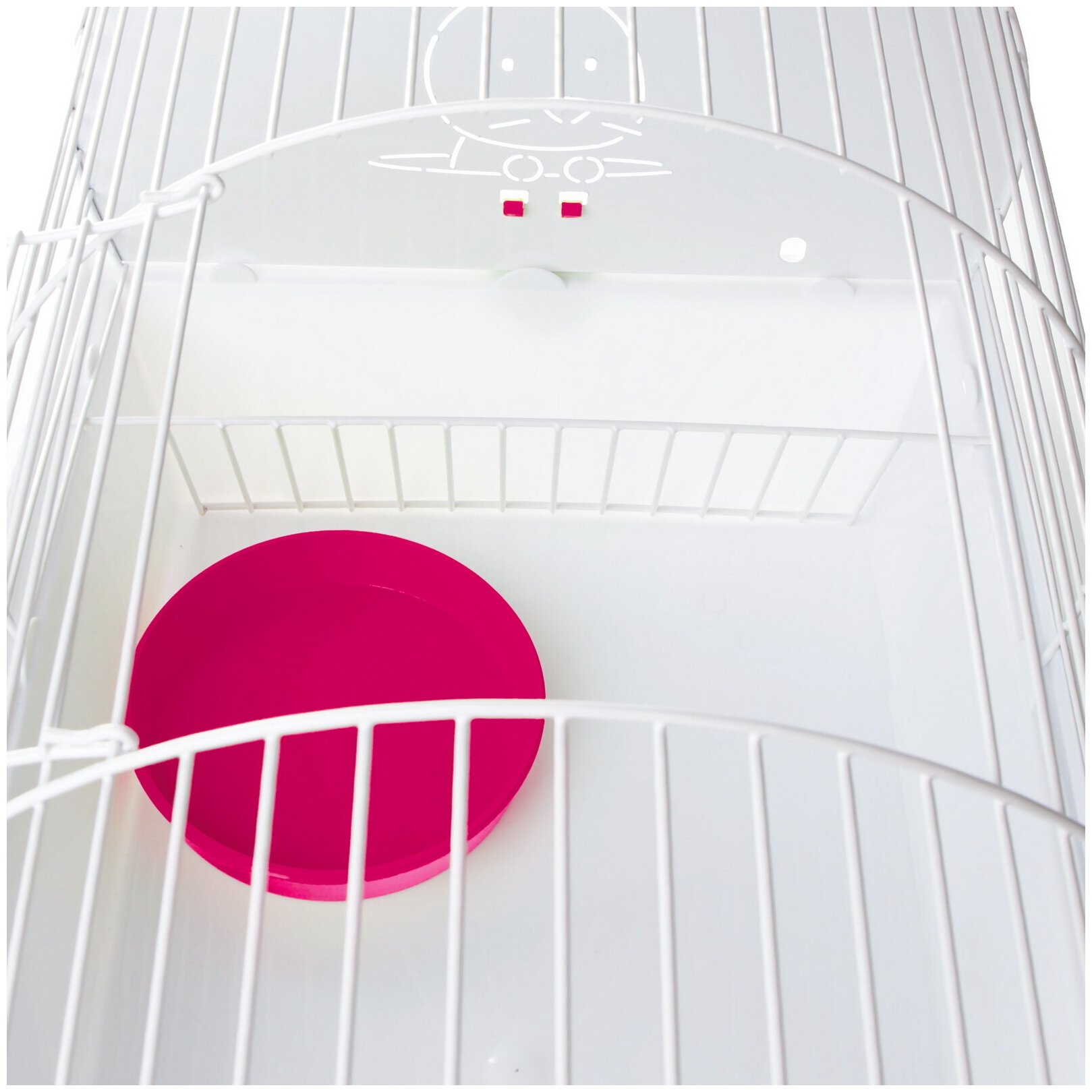 Для свободного доступа к зверьку в верхней части решетки располагается одна дверка. Пластиковая основа присоединяется к верхней части с помощью двух защелок, так что при необходимости поменять наполнитель или провести генеральную уборку, разобрать и собрать конструкцию не составит труда даже ребенку. Решетка на дне поддона не предусмотрена, а значит, ваш любимец не рискует повредить лапку или хвост даже при самых смелых маневрах.