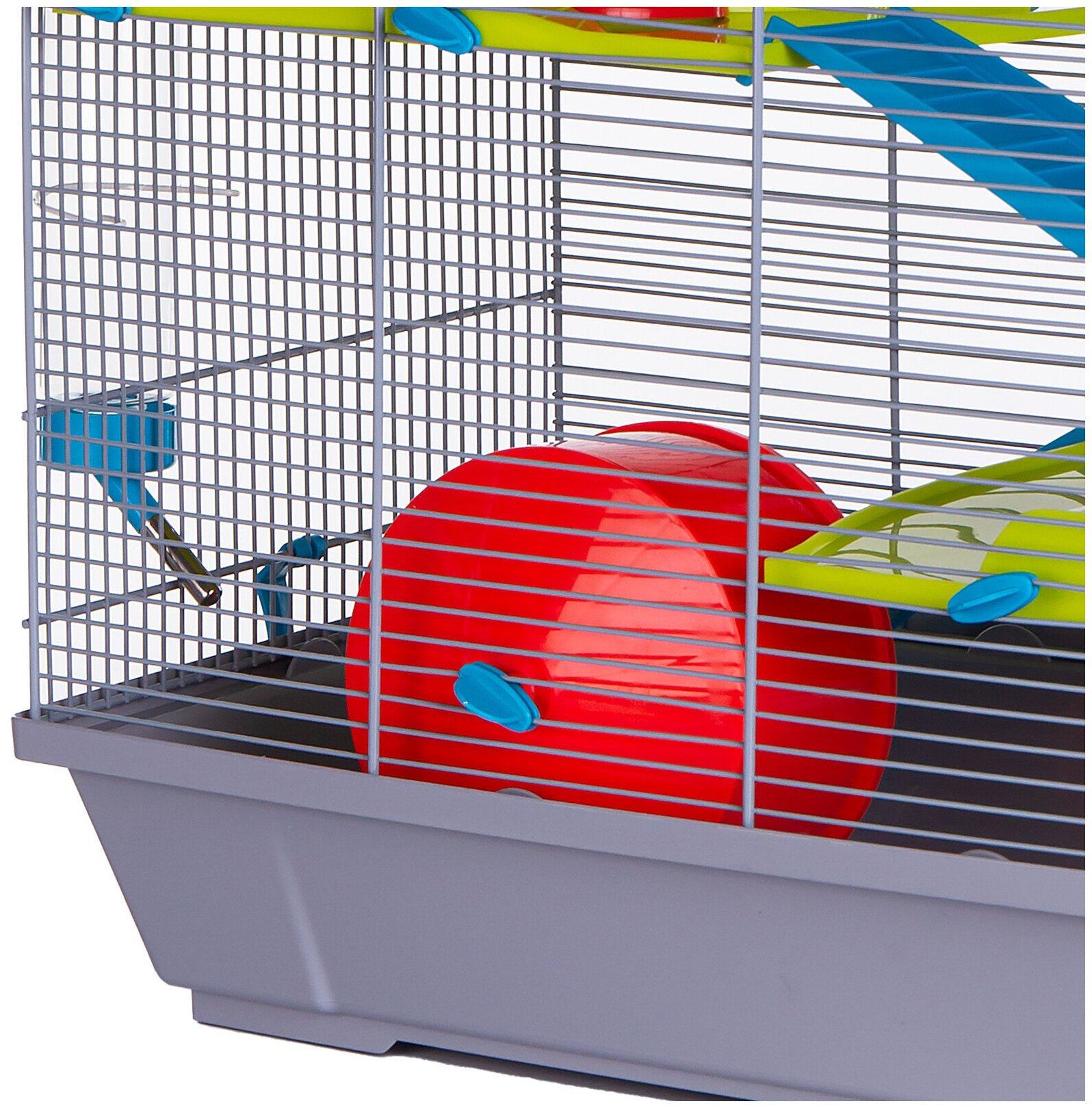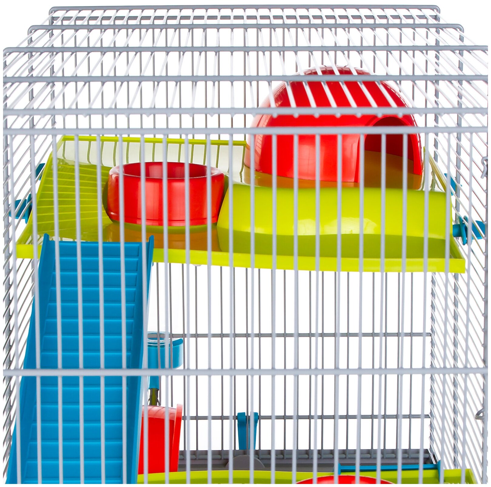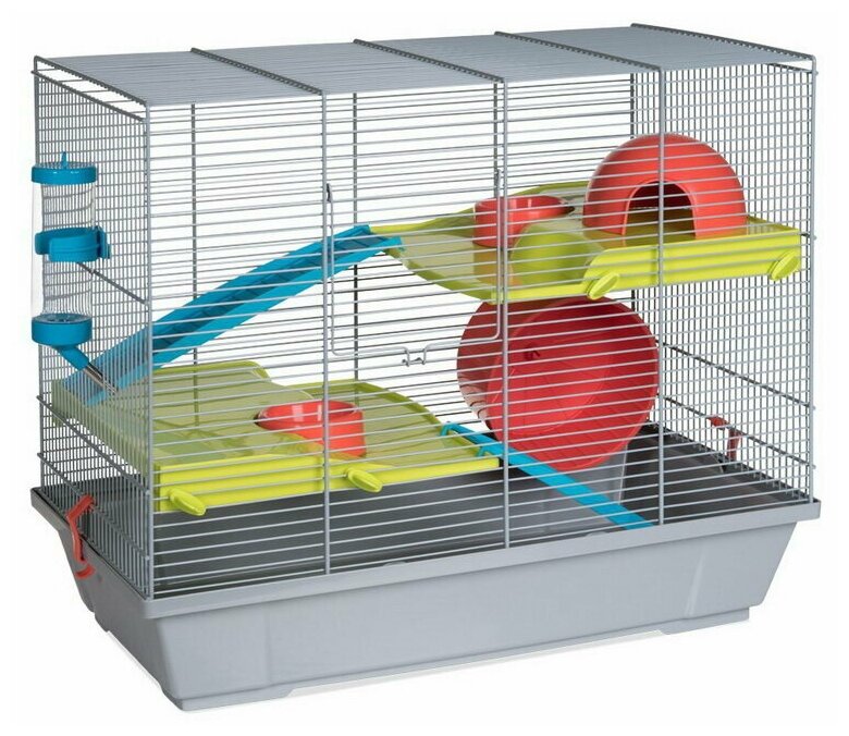 Высокий пластиковый поддон предотвращает разбрасывание за пределы клетки наполнителя и мелкого мусора и создаёт для маленького обитателя атмосферу уюта и защищенности. Для свободного доступа к зверьку на передней части решетки располагается одна дверка. В случае необходимости поменять наполнитель или провести генеральную уборку, клетка легко и просто разбирается - пластиковая основа присоединяется к верхней части с помощью двух защелок. Решетка на дне поддона не предусмотрена, а значит, ваш любимец не рискует повредить лапку или хвост даже при самых смелых маневрах.