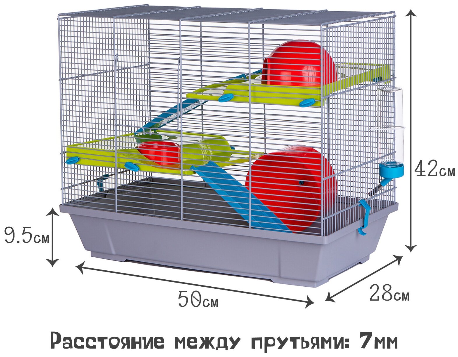 Это клетка не подходит для всех хомяков, только если для очень маленьких джунгарских. Размеры неверные - основание не 28см, а всего 20см. Колесо в комплекте тоже только для джунгарского хомяка, всего 12-13см в диаметре. Как итог, из-за неверных размеров, невозможно установить нормальное колесо для сирийского хомяка, полное разочарование. колесо - это основной аксессуар для хомяка, в маленьком колесе у него страдает позвоночник. Столько денег стоит, неверное описание, а не подходит хомяку.