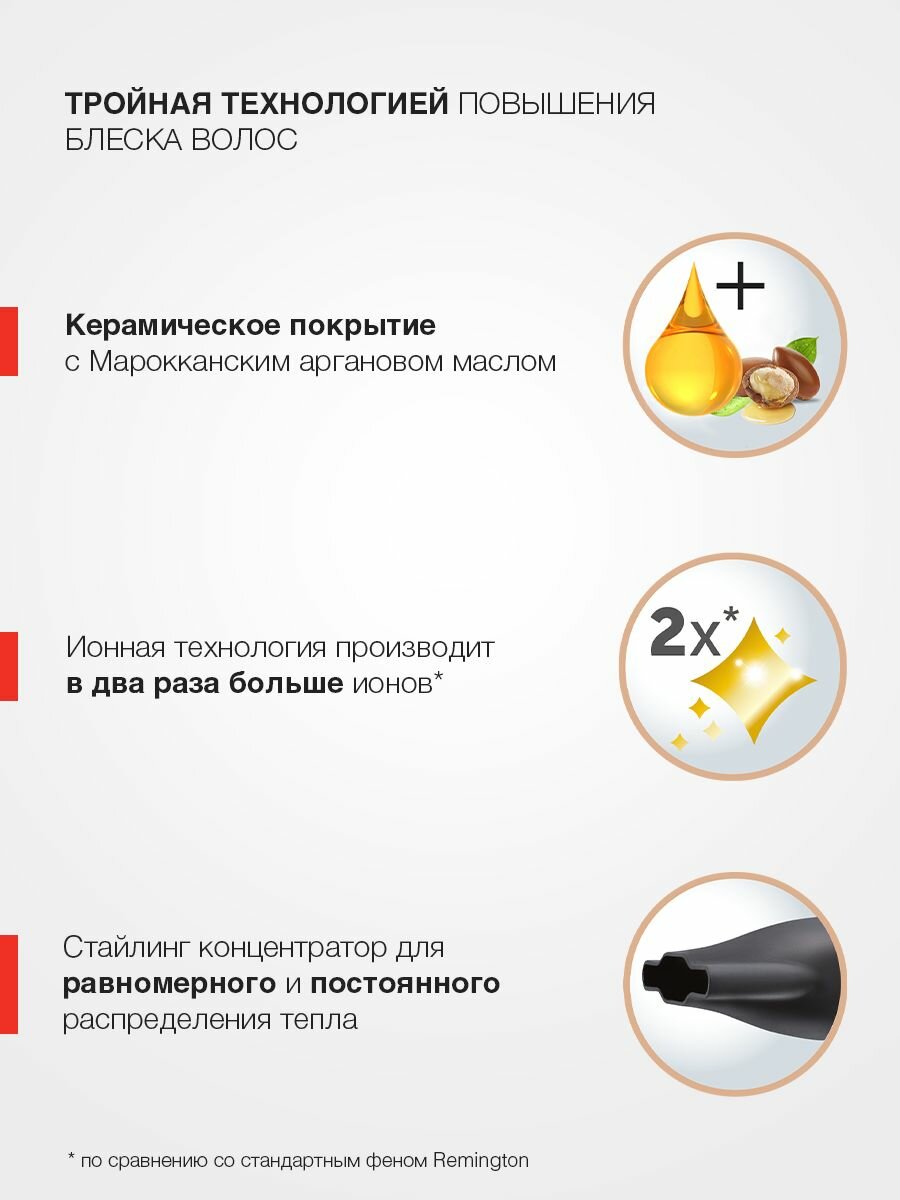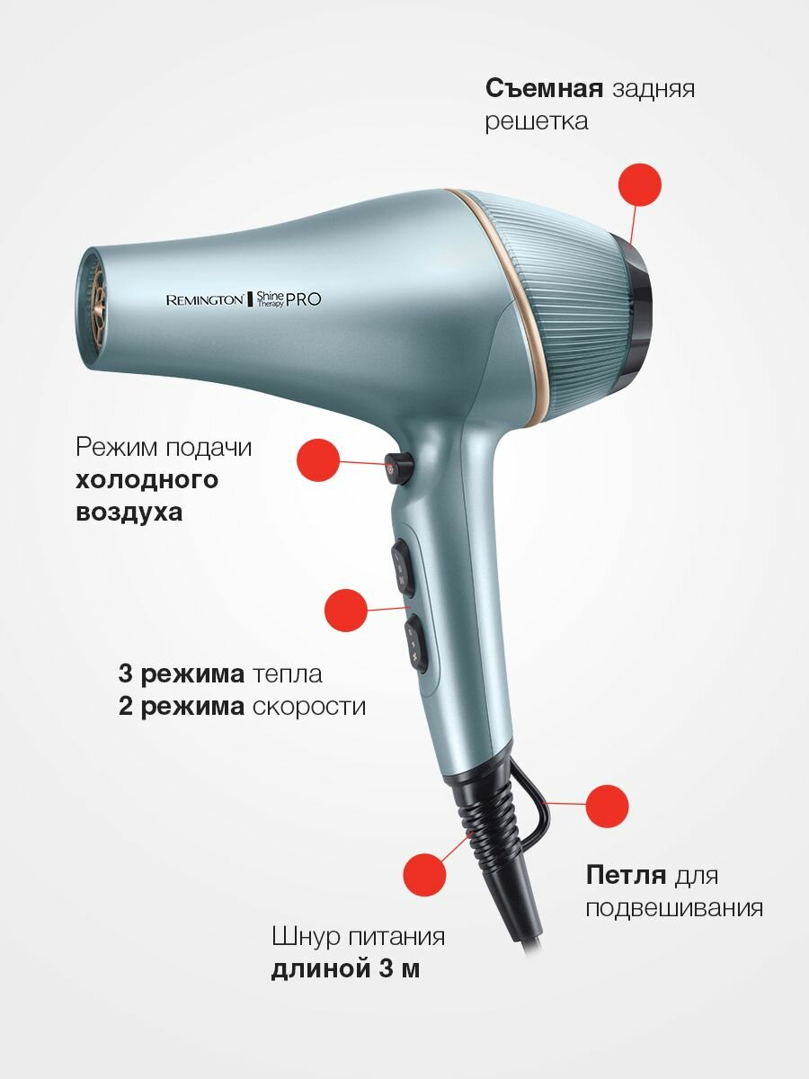 Мы знаем, что ежедневная укладка влияет на ваши волосы. Вот почему фен Shine Therapy PRO AC оснащен улучшенными микрокондиционерами с марокканским аргановым маслом, которые выпускаются в воздушный поток перед переносом на волосы. Теперь вам никогда не придется идти на компромисс с блеском для красивой укладки феном.