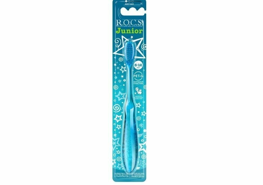 Описание товара:Оригинальная зубная щетка "R.O.C.S. Junior" мягкая для детей в возрасте от 6 до 12 лет представляет собой уникальное сочетание необычного дизайна, высокой эффективности и максимальной безопасности использования. Она разработана при участии детских стоматологов на основе Toothbrushing safety PRO-system (система безопасной чистки зубов) и производится только из высококачественных материалов. Зубная щетка представлена в нескольких цветовых сочетаниях, что позволяет выбрать не только оттенок корпуса, но и ворса, соответствующие вкусам и пожеланиям ребенка. Ручка зубных щеток "R.O.C.S. Junior" (для детей от 6 до 12 лет) изготавливается из безопасного, высококачественного пластика PET. Данный пластик отличается однородной плотной структурой, что значительно уменьшает уровень нежелательной контаминации (скопления и развития) бактериальной микрофлоры на поверхности. Щетки зубные линейки "ROCS. Junior" для детей имеют гладкую обтекаемую форму, немного расширенную к низу. Это обеспечивает надежное удерживание изделия в руке и, соответственно, комфортное использование. В качестве декоративных элементов, ручки украшены текстурными дудлами (фигурками героев).Состав товара:Полимерная нить, ПЭТ.