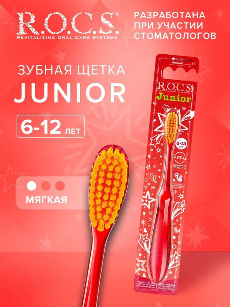 РОКС ЩЕТКА ЗУБНАЯ JUNIOR ДЛЯ ДЕТЕЙ ОТ 6 ДО 12 ЛЕТ МЯГКАЯ ООО "ВДС-Ступино" (1209993)