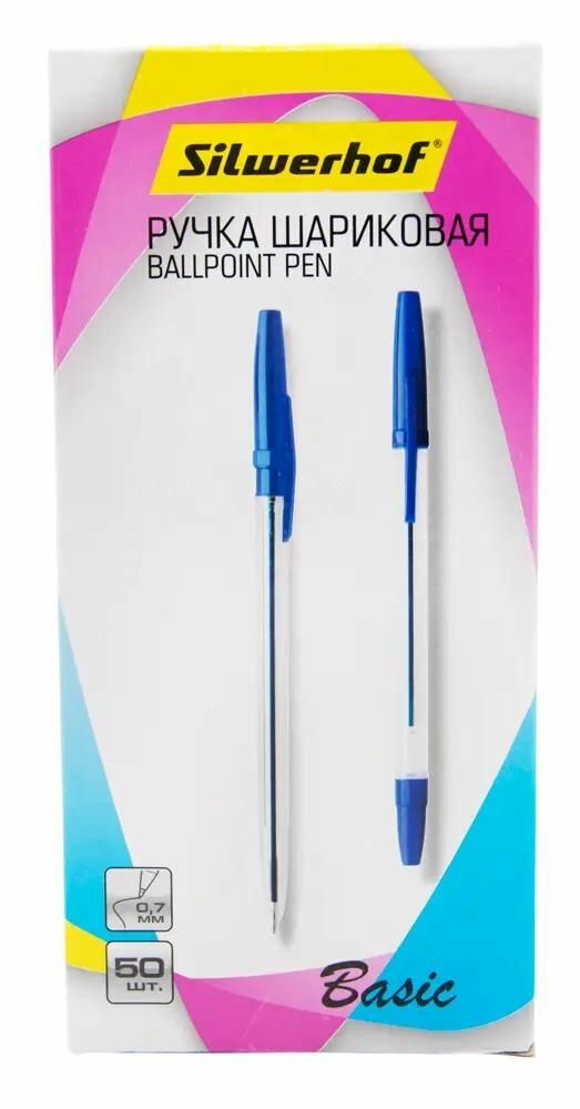 Упаковка шариковых ручек SILWERHOF Basic 0.7мм синий [026200-02] 50 шт./кор.