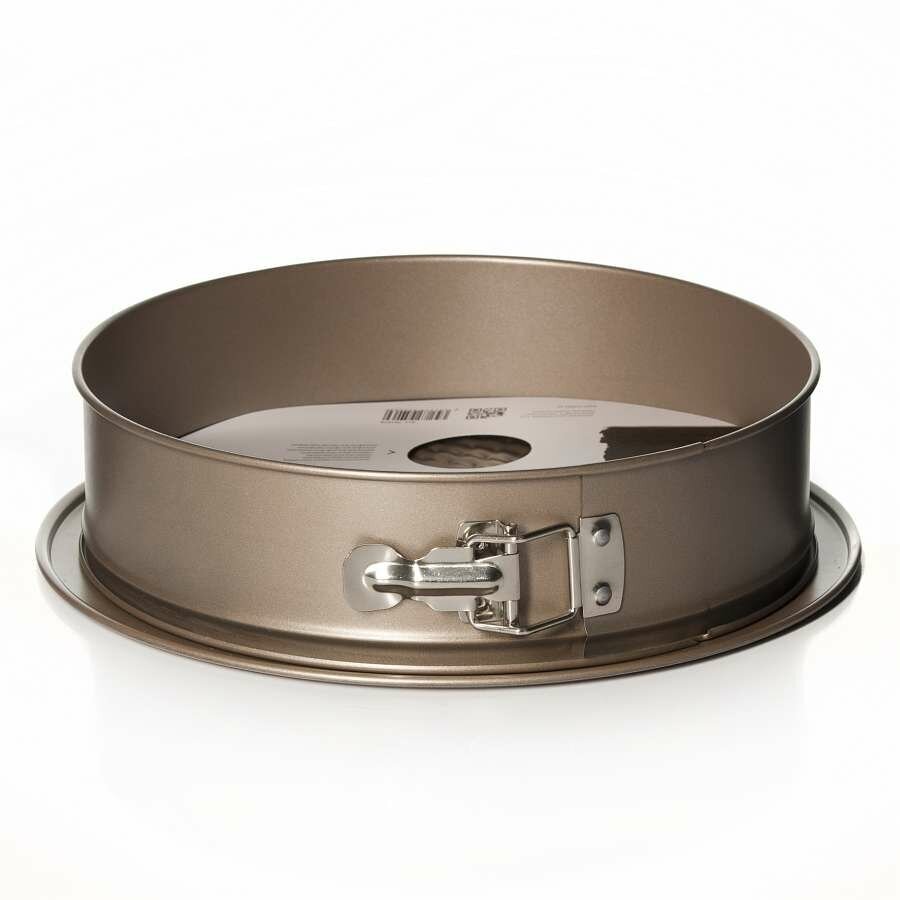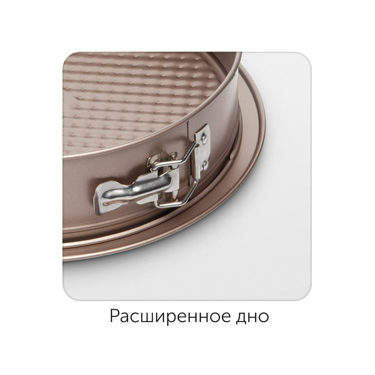 Расширенное дно разъемной формы делает удобной работу с ней, облегчает украшение выпечки и ее сервировку.