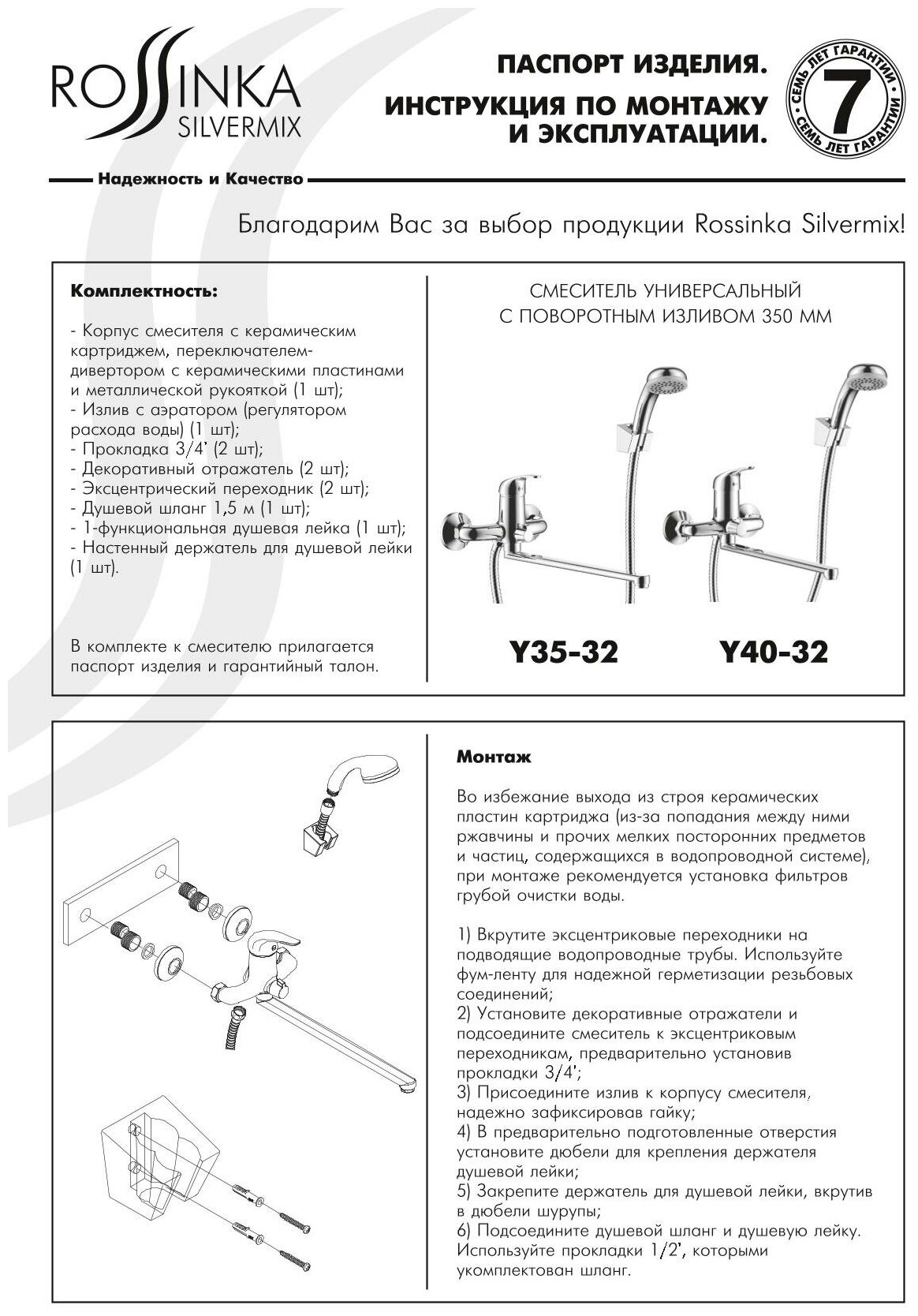Сервис сравнения цен СкидкаГИД предлагает сравнить цены на товар «Смеситель для ванны и душа Rossinka Y40-32»