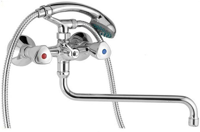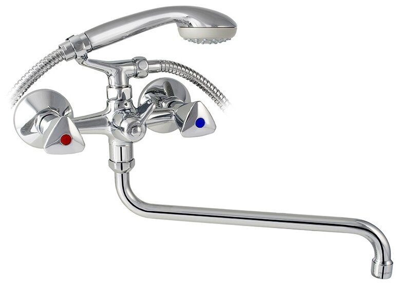 145-0002-31/604 Е CER Смеситель для ванны-раковины, S 300 мм, шланг 1,5м, Basic, с керамической кран-буксой