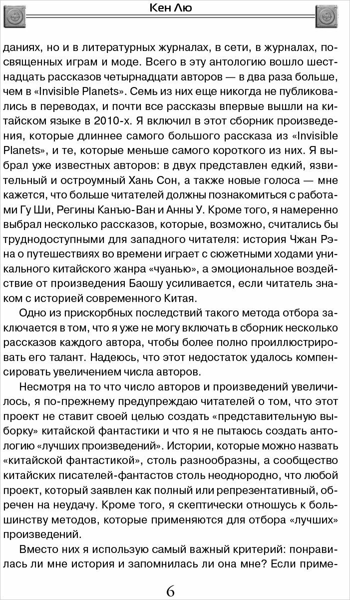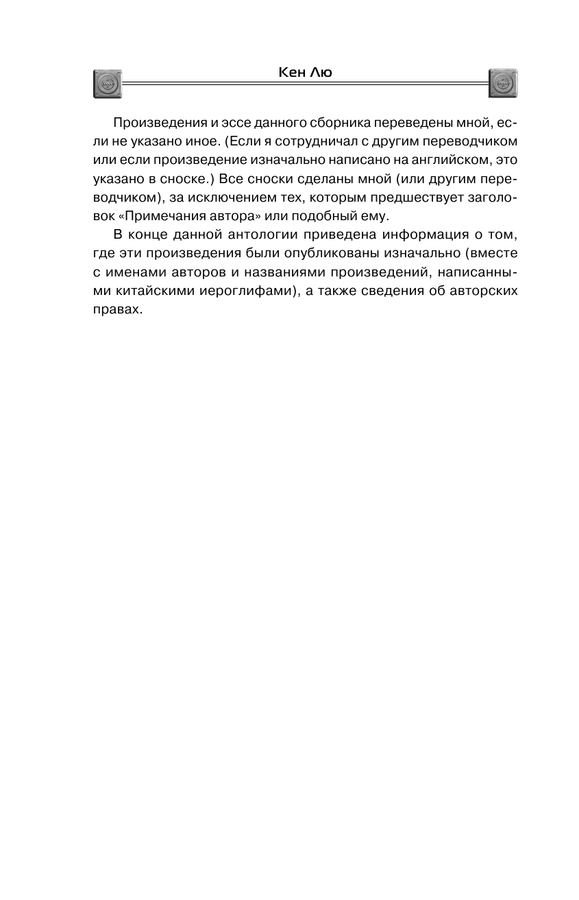 Кроме того, добавлены три очерка, посвященные истории научной фантастики и фэнтези в Китае. В этом сборнике вас ждет неповторимый, узнаваемый колорит культуры, пронизывающий творения китайских авторов.