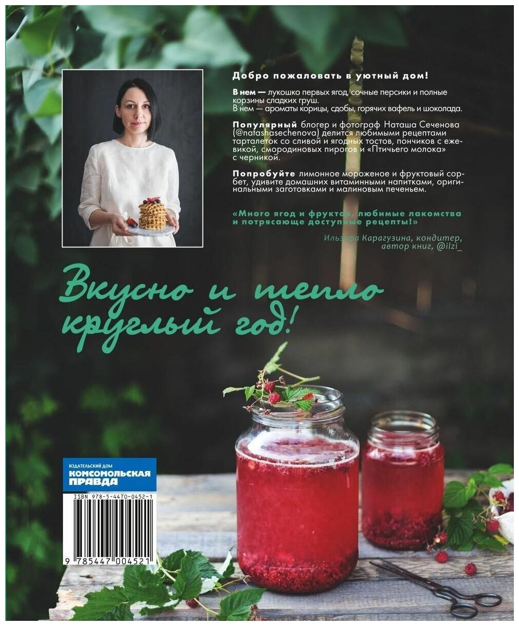Хотите сохранить лето на весь год? Тогда это книга создана для вас! Популярный фуд-блогер Наташа Сеченова делится любимыми рецептами тарталеток со сливой и ягодных тостов, пончиков с ежевикой, смородиновых пирогов и "Птичьего молока" с черникой. Попробуйте лимонное мороженое и фруктовый сорбет, удивите домашних витаминными напитками, оригинальными заготовками и малиновым печеньем. Добро пожаловать в уютный дом, наполненный ароматами корицы, сдобы, горячих вафель и шоколада. Малиновый или вишневый соус с миндальным ликером, облепиховый морс и еще много невероятно вкусных рецептов сохранят вкус и тепло лета надолго.