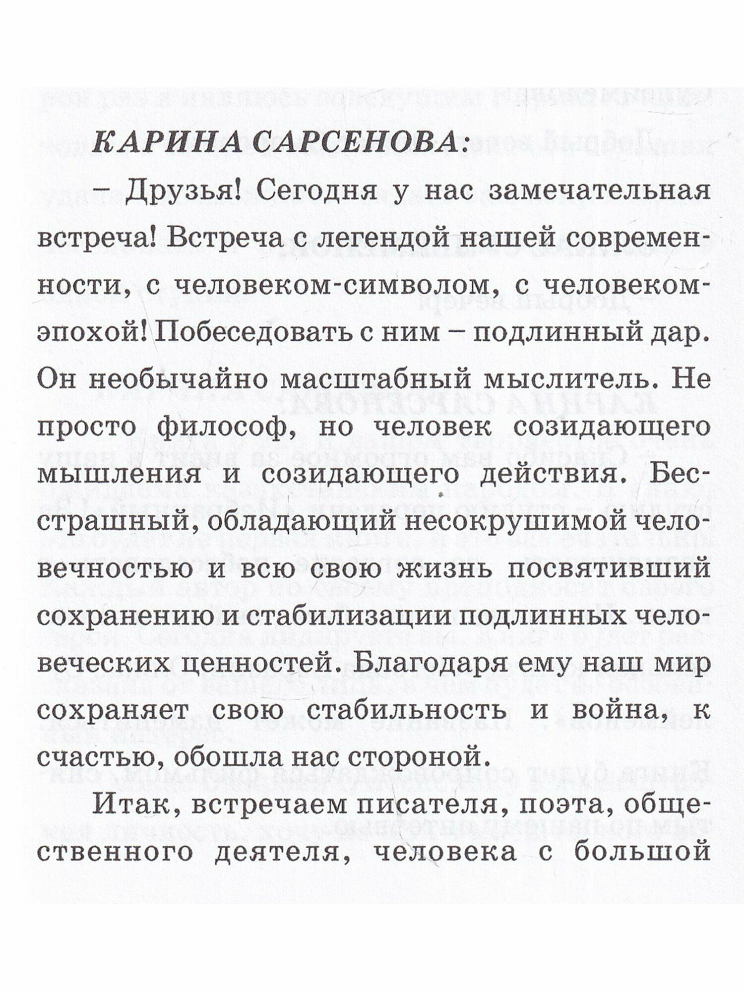 Читателю предлагается очередной выпуск интересных и содержательных интервью Карины Сарсеновой, которые входят в цикл её передач «Избранный».