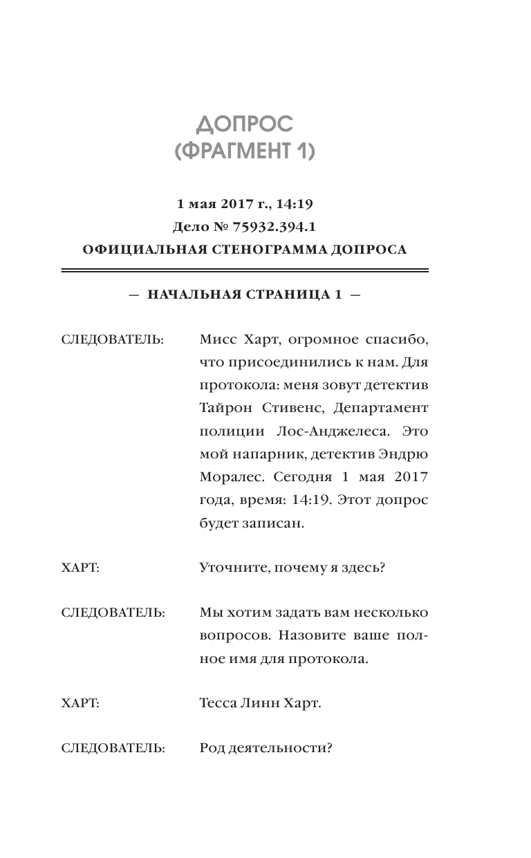 Повествование идёт от трех лиц - от Тесс, Эрика и редко от Блэр, а также показывают материалы допроса полицейских.