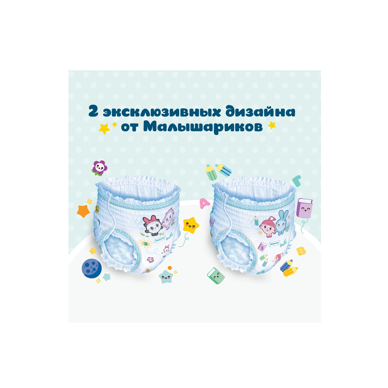 У трусиков Pampers – новый дизайн и эксклюзивные принты от Малышариков, и, конечно, первоклассная сухость и комфорт, которые так важны для активного развития малыша.