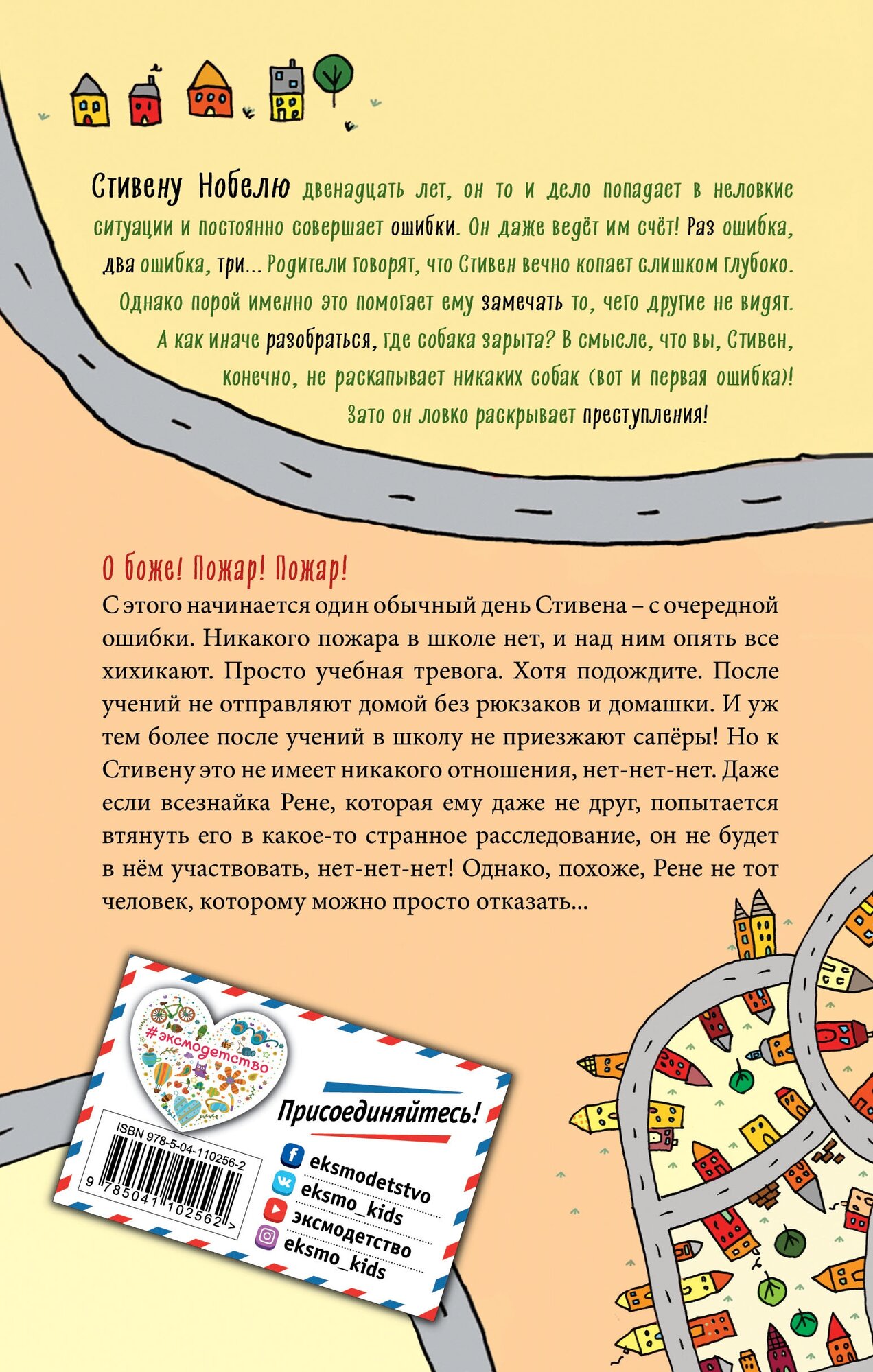 Это первая книга в отличной серии подростковых детективов о Стивене Нобеле. Стивен - совершенно обычный мальчик 12-ти лет, он хочет иметь друзей и почаще видеть маму, которая работает стюардессой. А ещё он часто всего боится и вечно попадает в неловкие ситуации - он даже их считает. И это помогает ему быть особенно внимательным и замечать то, что другие не видят. Благодаря этому у него получается восстановить справедливость в своём маленьком городке и понять, что ошибки - это не так плохо, как он думал. Отличная детективная история, умная, глубокая, метами уморительно смешная, харизматичная и захватывающая. Придётся по душе читателям от 10 лет, и даже взрослым будет интересно почитать.