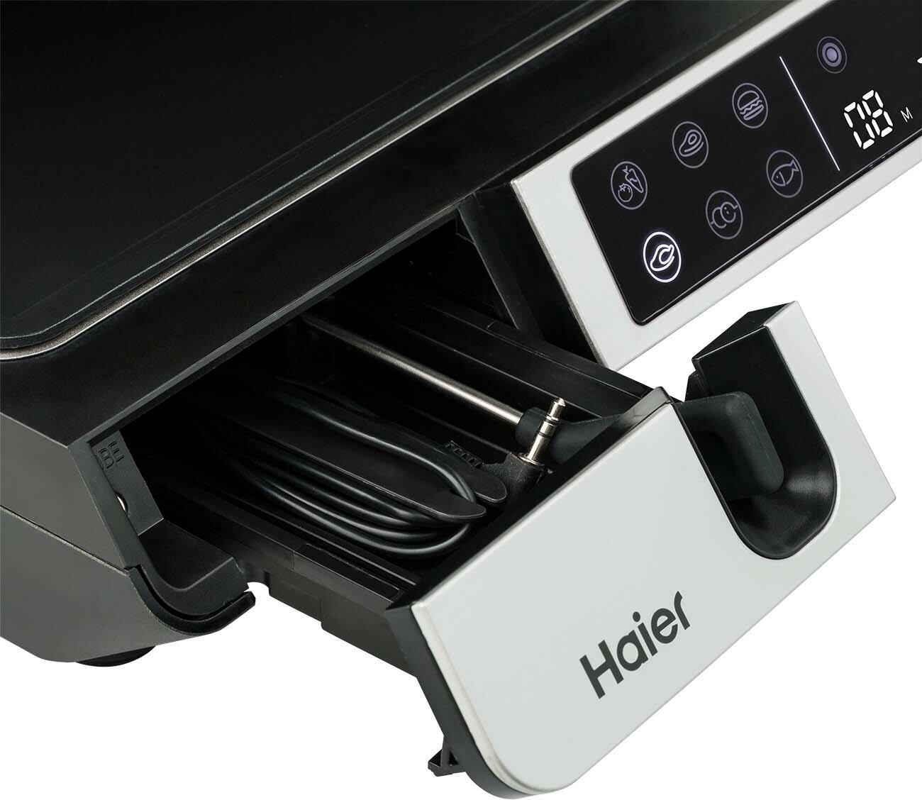 Электрогриль от бренда Haier очень удобен и прост в эксплуатации. Диапазон температур 80-240° подходит для приготовления самых разных блюд. Прибор оснащён термощупом, чтобы вы могли понять, прожарился ли продукт. Панели гриля легко снимаются и очищаются в посудомоечной машине. забота О здоровье Антипригарное покрытие позволяет вам готовить, не используя масло. Еда получится очень вкусной и подходящей для организации системы правильного питания. понятное управлениеЕму служит современный сенсорный дисплей, который обеспечивает не только интуитивную настройку устройства, но и быстрое очищение от загрязнений.