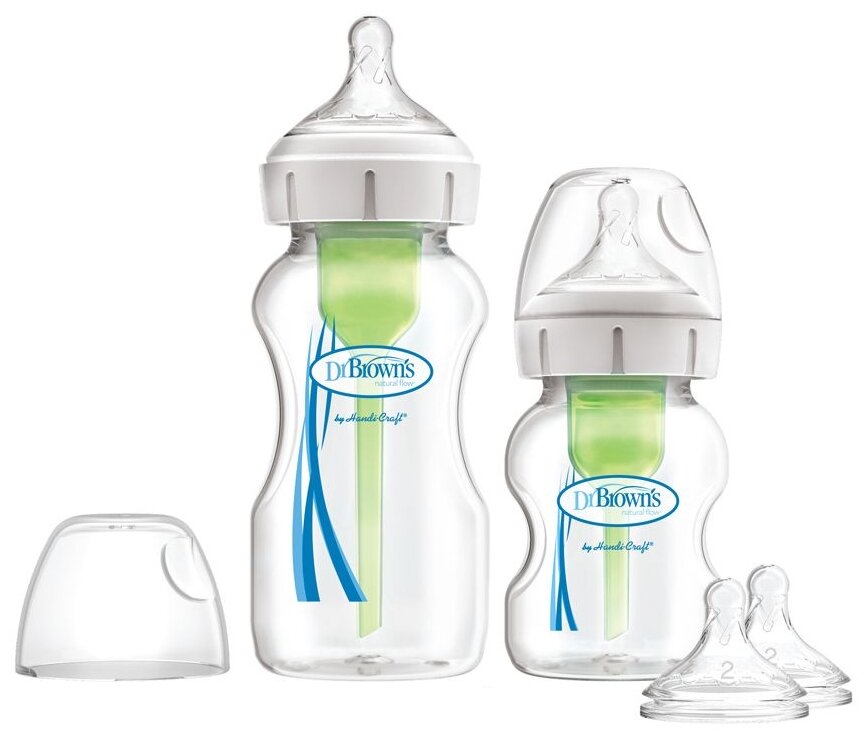 Бутылочка Dr.Brown's Набор антиколиковых бутылочек Options+ с широким горлышком 2 шт. 1х270 мл, 1х150 мл Особенности: Новая соска, повторяющая форму материнской груди, помогает ребёнку правильно приложиться к соску, применяя усилия и задействуя группы мышц как и при естественном кормлении Сохраняет витамины С, А, Е Исключает заглатывание воздуха ребёнком Препятствует образованию вакуума в бутылочке и формированию пузырьков воздуха Выемка на держателе соски помогает хорошему захвату при закручивании и откручивании соски Выемка в крышке размером в подушечку пальца поможет вам легко открыть крышку одной рукой Бутылочку можно использовать как вместе так и без вентиляционной системы Разрешено мыть в верхней корзине посудомоечной машины. В набор входит: Бутылочка Options+ с широким горлышком 270 мл – 1 шт. Бутылочка Options+ с широким горлышком 150 мл – 1 шт. Соски для бутылочек 1-й уровень, от 0 месяцев – 2 шт. (на бутылках) Соски для бутылочек 2-й уровень, от 3-х месяцев – 2 шт. Ёршик для чистки вентиляционной системы – 1 шт.