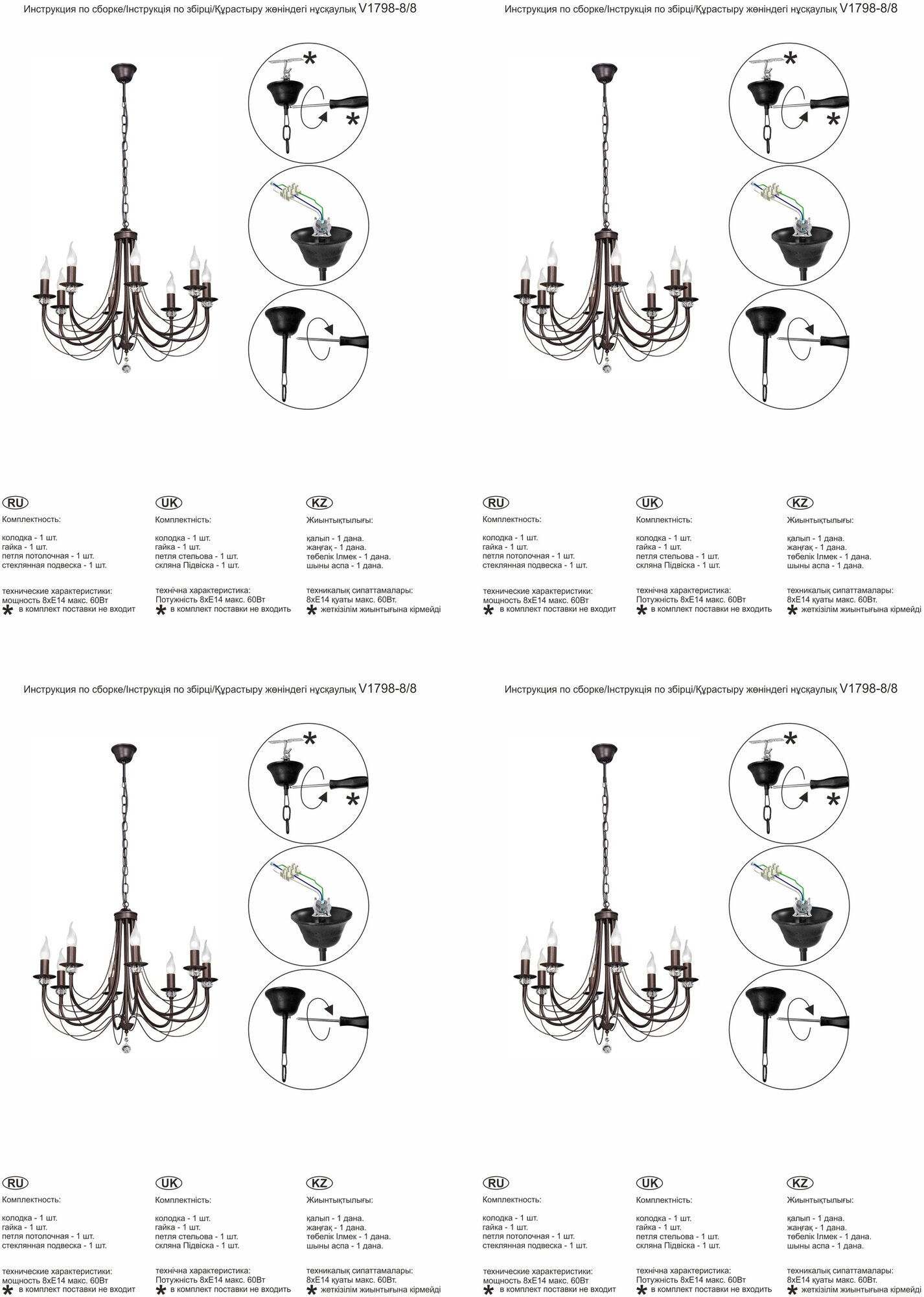 | Декор | хрустальные подвески |