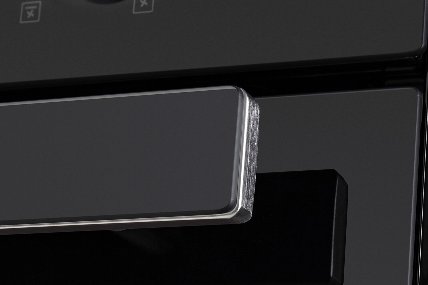 Фронтальная панель дверцы, лицевая часть блока управления и фасад ручки дверцы сделаны из высококачественного жаропрочного стекла черного цвета, окрашенного по всему объему, что является отличительной чертой бытового прибора премиум-класса.