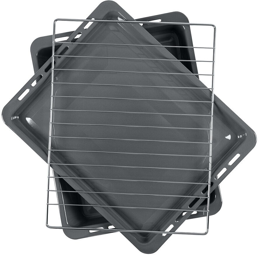 Объем 60 л при стандартной ширине 60 см позволяет готовить одновременно несколько блюд, разместив решетку или противень на одном из 5-ти уровней боковых направляющих. Один уровень оснащен удобными телескопическими направляющими. Внутреннее покрытие камеры выполнено из специальной легкоочищающейся эмали черного цвета.