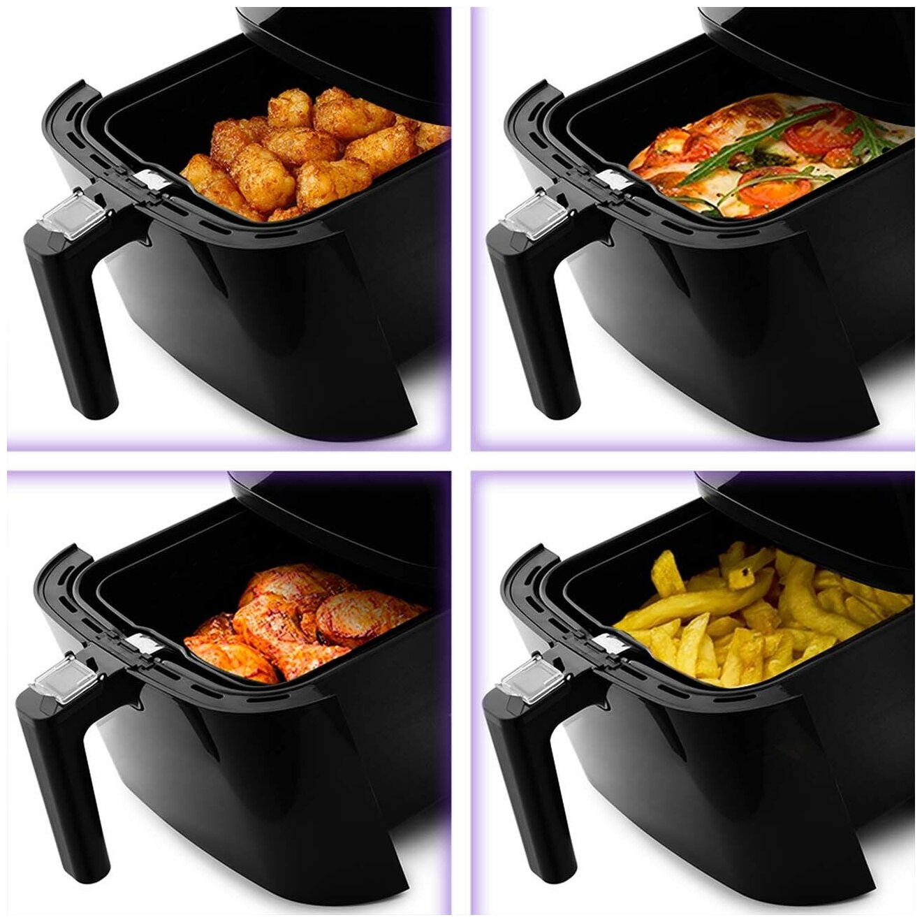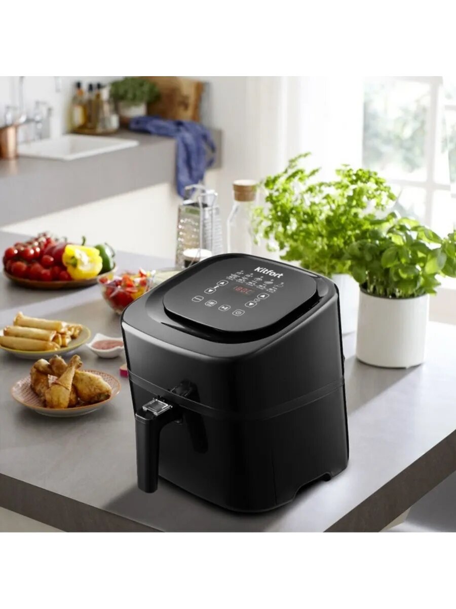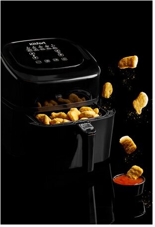 Стильный аэрогриль Kitfort может использоваться как аэрогриль, а также как аэрофритюрница и духовка и позволяет готовить большинство продуктов с минимальным количеством масла или вовсе без его добавления. Благодаря системе циркуляции горячего воздуха, продукты обжариваются равномерно со всех сторон, получаясь при этом нежными внутри и с хрустящей корочкой снаружи.