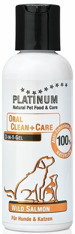 Platinum Oral Clean & Care Wild Salmon - гель с маслом лосося для бережного ухода за полостью рта собак и кошек. Предотвращает появление зубного налета, борется с воспалением дёсен и устраняет неприятный запах изо рта. Альтернатива удалению зубного камня под наркозом у ветеринара! Натуральные компоненты не вредят эмали зубов. Подходят для профилактики и удаления незначительного налета у кошек и особенно привередливых собак.