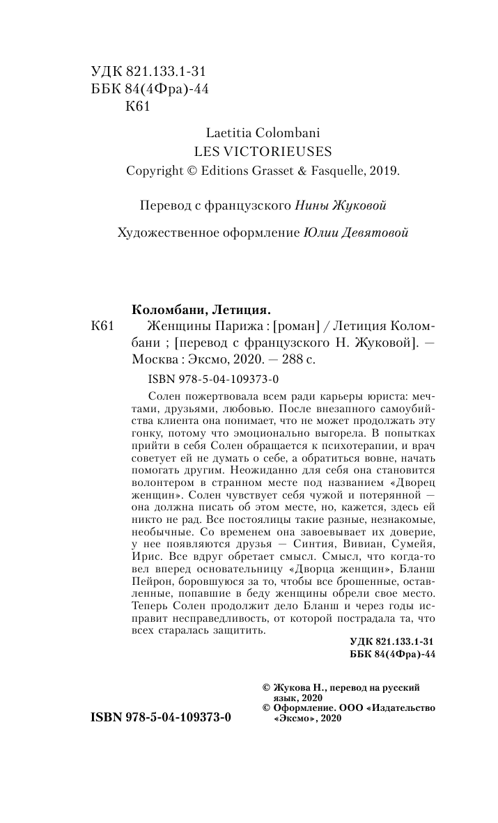 Книга: Женщины Парижа (Летиция Коломбани); Эксмо, Редакция 1, 2020