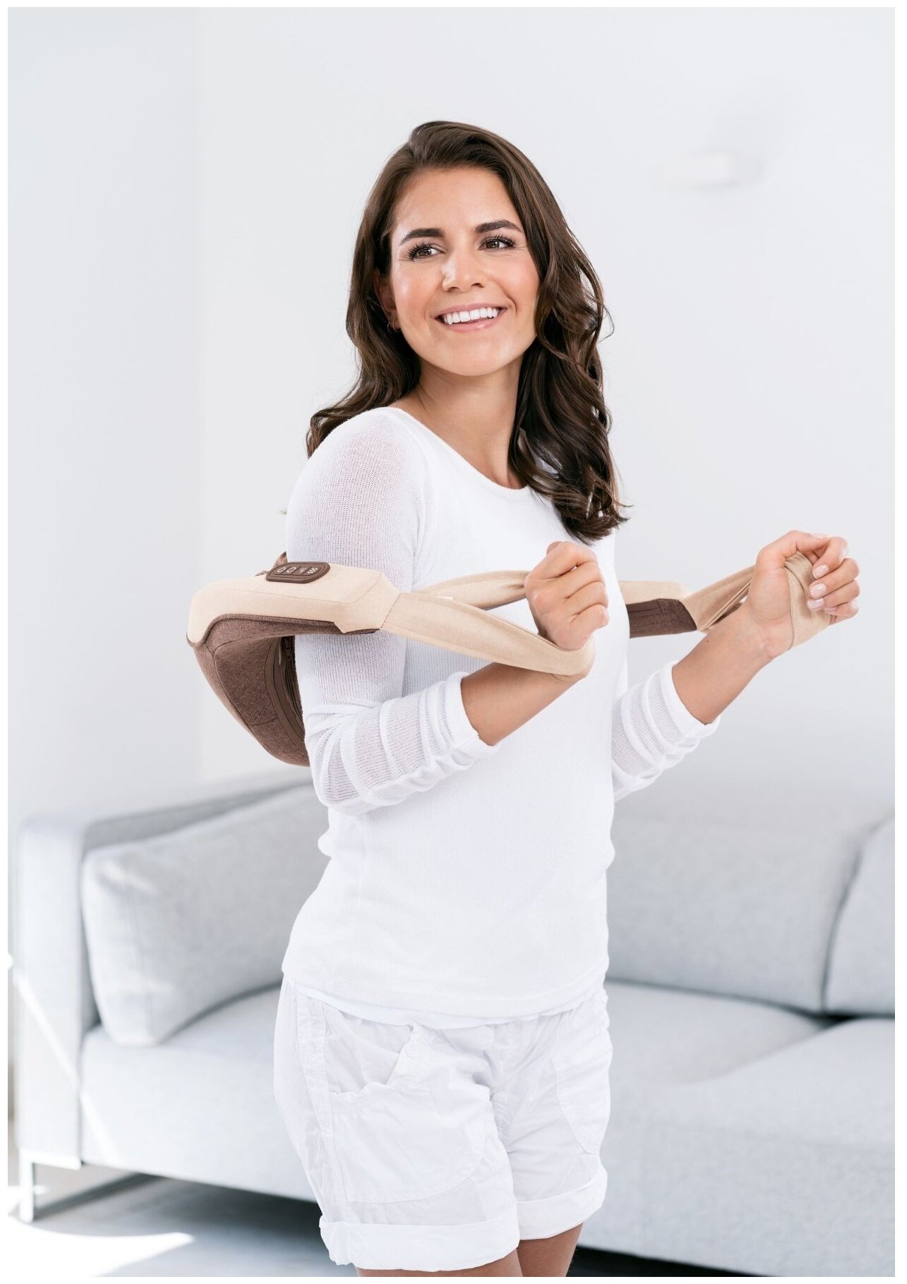 | Прочие особенности и свойства | Благодаря прибору для массажа шеи Вы приобретаете собственную массажную студию на дому. Имитирующие руки массажные головки 4D создают ощущение реального массажа. Функция успокаивающего тепла может быть включена в качестве опции. Благотворное действие после долгого дня!,,Проникающий и разминающий массаж для расслабления мускулатуры,Имитирующие руки массажные головки 4D для ощущения реального массажа,,Со съемным чехлом, который можно стирать,4 разминающих ролика и 2 сжимающих узла,,С функцией прогрева,2 уровня интенсивности + 1 режим массажа,,Вращение по часовой стрелке или против нее,Со съемным чехлом, который можно стирать,,Простота пользования благодаря элементу управления, расположенному на приборе,,Практичные ручки для регулировки силы массажа,Автоматическое отключение |