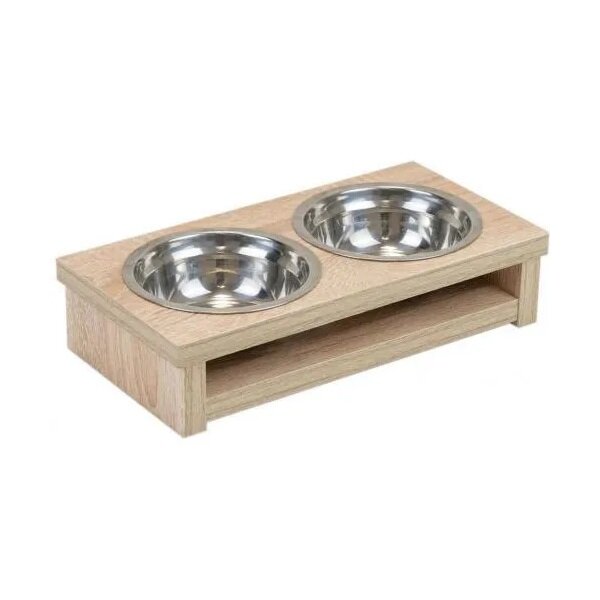 Миска на подставке для животных ДАРЭЛЛ двойная, ламинат дуб сонома 2х350мл