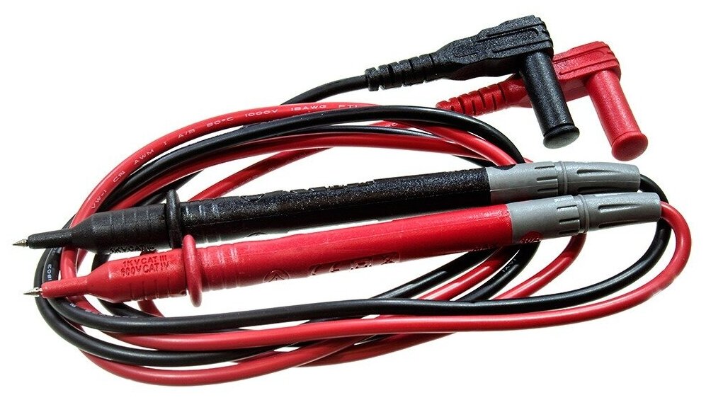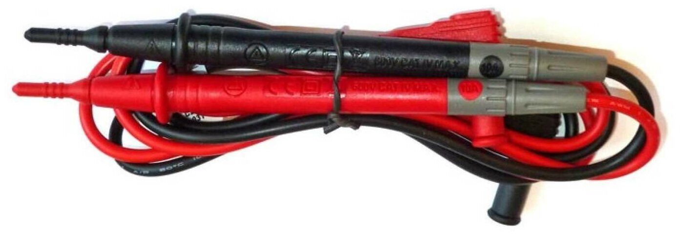 Щупы для тестера и токовых клещей. Щупы подсоединяются к гнездам мультиметра. Щупы для удобства имеют разные цвета: черный и красный. Как правило, черный щуп подключается на общее гнездо, а красный — на гнездо «+».