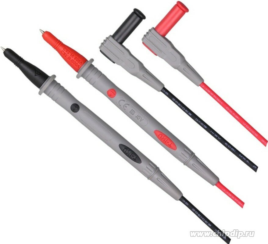 Щупы тестера UT-L27 UNI-T 13-0034 подключаются к мультиметрам, для определения тока до 10 А и напряжения до 1000 В (CAT III 1000 V/CAT IV 600 V 10 A). Важно правильно подсоединить провода - черный щуп подключается в общее гнездо, красный в гнездо "+". Технические характеристики Длина - 900 мм. Длина рукояти от защитной гарды - 85 мм. Длина жала - 16 мм. Длина штекера - 20 мм. Диаметр штекера - 8 мм. Угол штекера - 110 градусов.