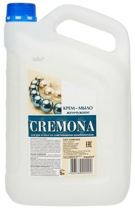 Сервис сравнения цен СкидкаГИД предлагает сравнить цены на товар «Крем-мыло жидкое CREMONA Premium жемчужное 5л»