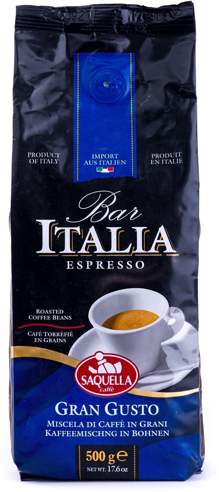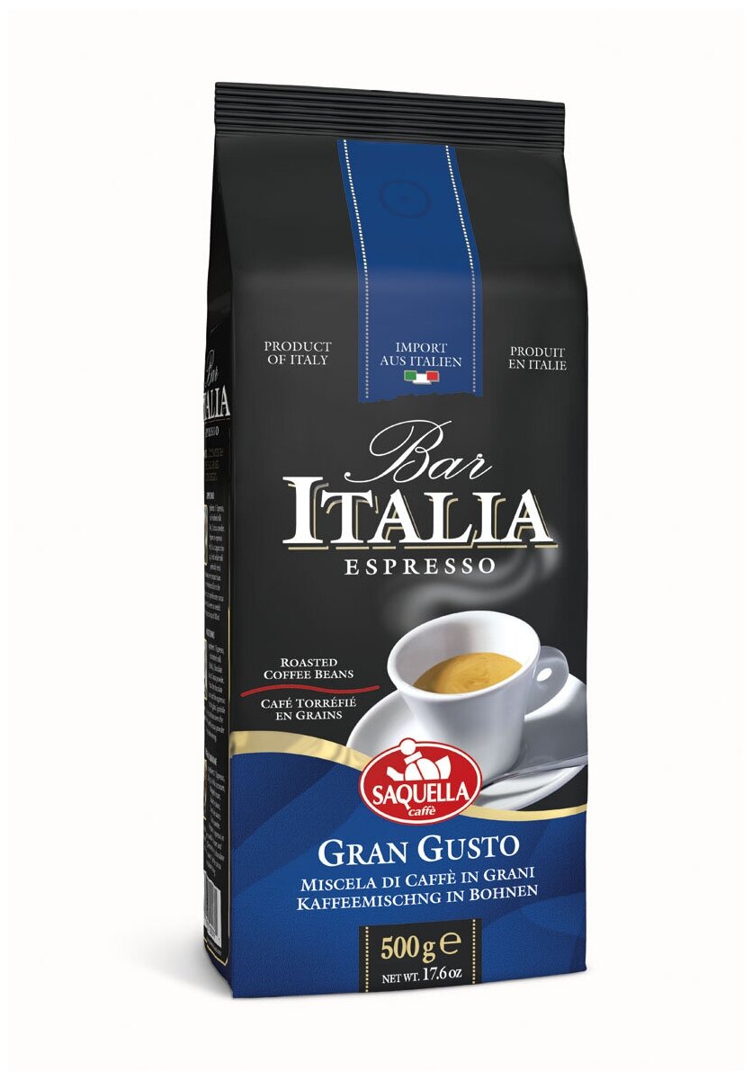 Кофе зерновой Saquella bar Italia Gran Gusto 1 кг Кофе в зернах Bar Italia Espresso Gran Gusto 1 кг