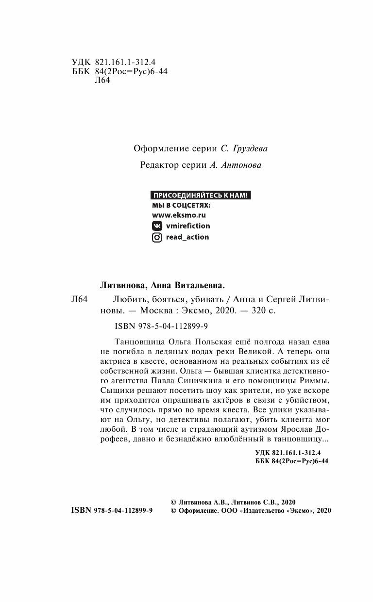 Книга: Любить бояться убивать (Анна и Сергей Литвиновы); Эксмо, Редакция 1, 2020