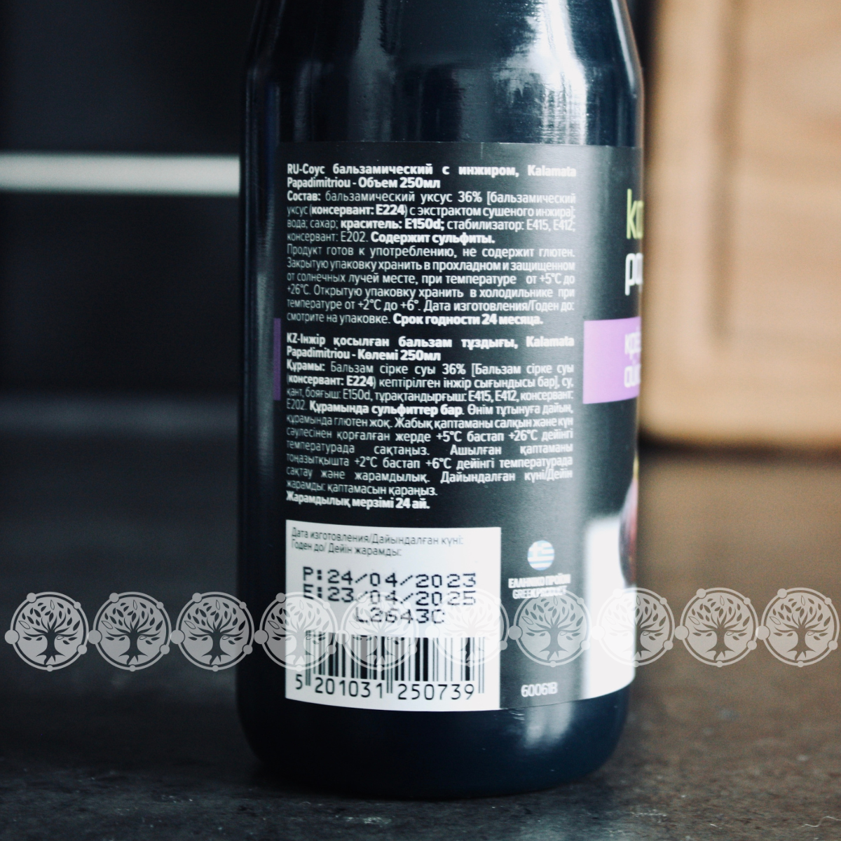 | Состав | бальзамический уксус 24%, уксусная настойка инжира 10% (сушеный инжир, бальзамический уксус), вода, сахар, стабилизатор, консервант |