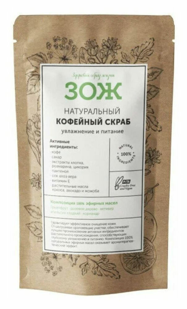 Скраб для тела ЗОЖ Кофейный Увлажнение и Питание 90г Ботавикос