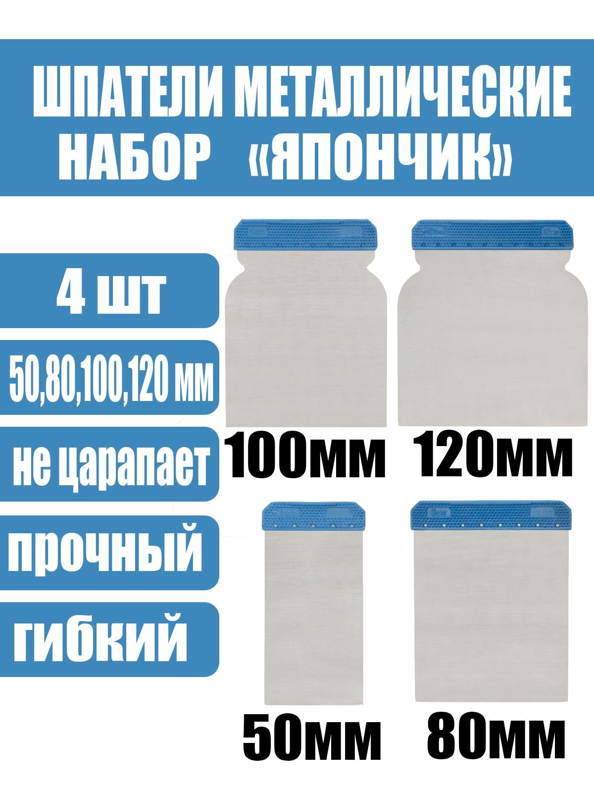Шпатели Fit Япончик металлические 50/80/100/120 мм, 4 шт