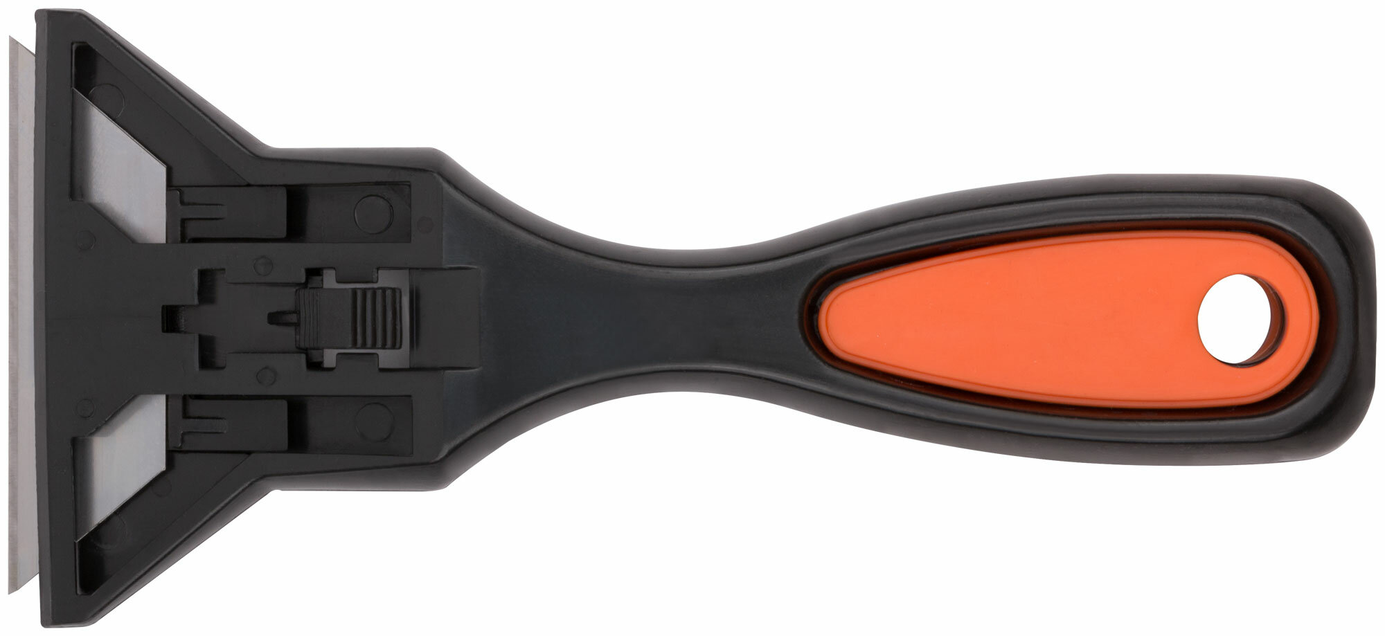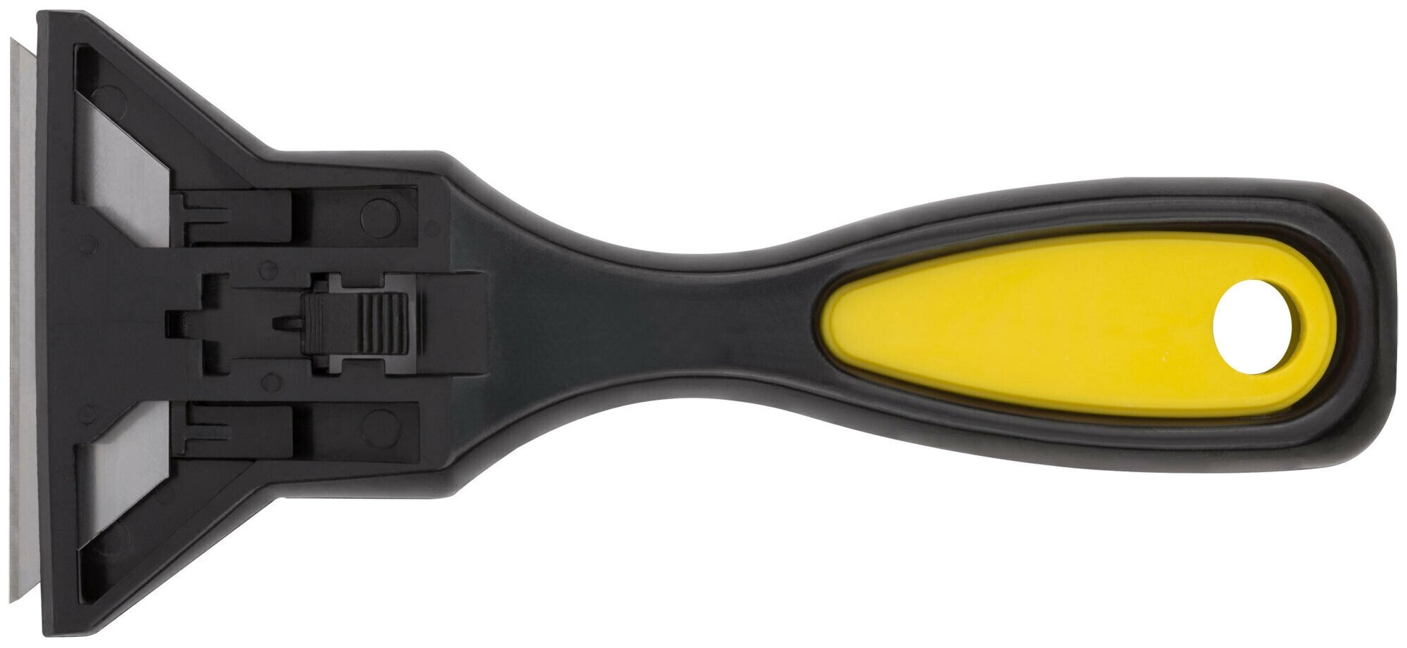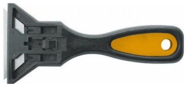 Усиленный. Для удаления старой краски и грязи со стекла, кафеля, керамики. Материал: стальное лезвие, пластиковый корпус. Упаковка: блистер.