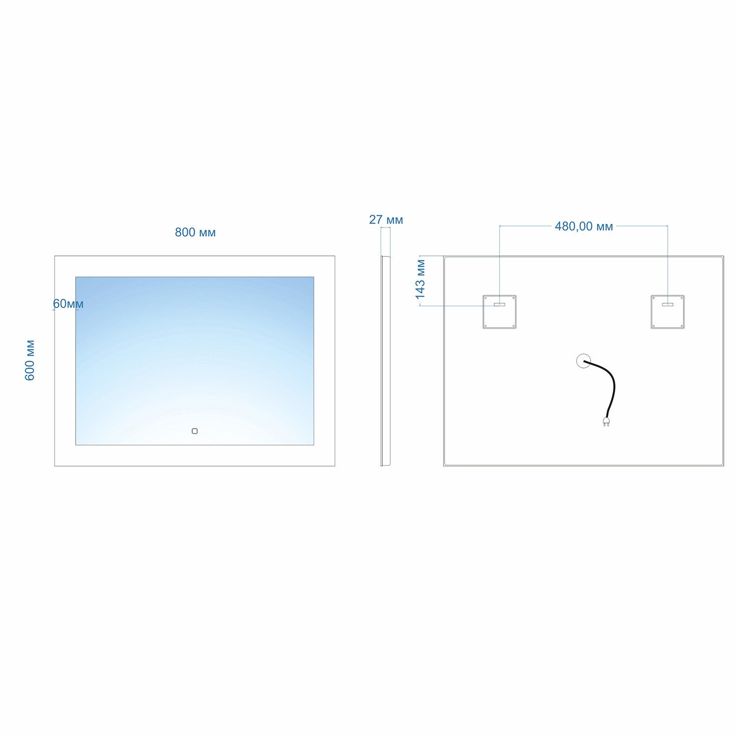 - Подсветка: светодиодная с сенсорным выключателем.
