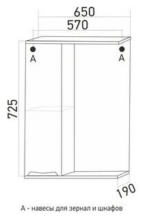 | Оснащение зеркала | С полкой, со шкафом, с подсветкой, с выключателем |