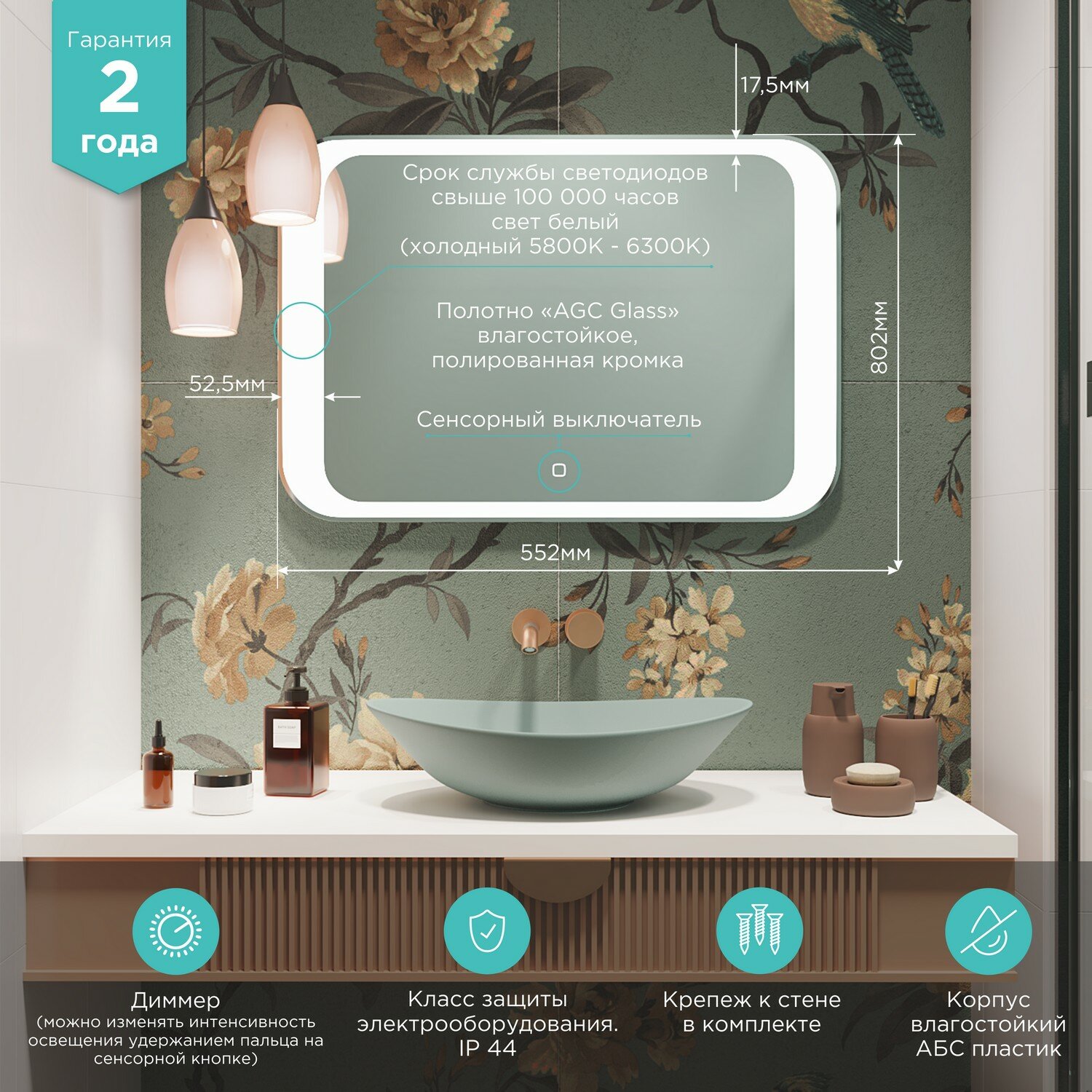 Зеркало в ванную Mixline Премьер Индиго 80 539788 с подсветкой и сенсорным выключателем.