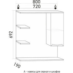 Подвесное зеркало со шкафом Mixline Этьен 80 R 540869 с подсветкой.