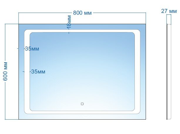 | Оснащение | зеркало с подсветкой, сенсорный выключатель, крепления, зеркало |