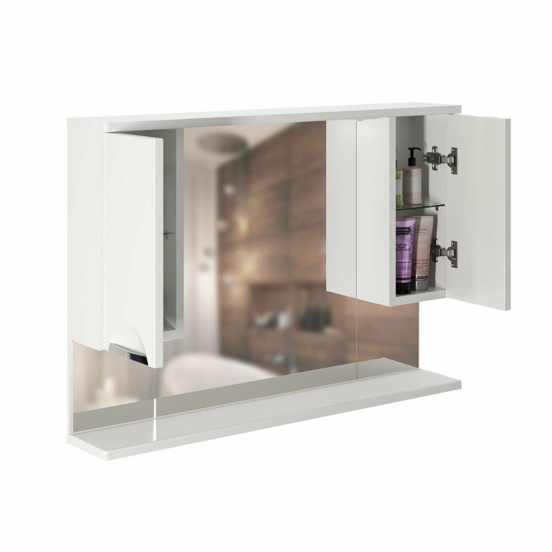 | Оснащение зеркала | С полкой, со шкафом, с подсветкой, с выключателем |